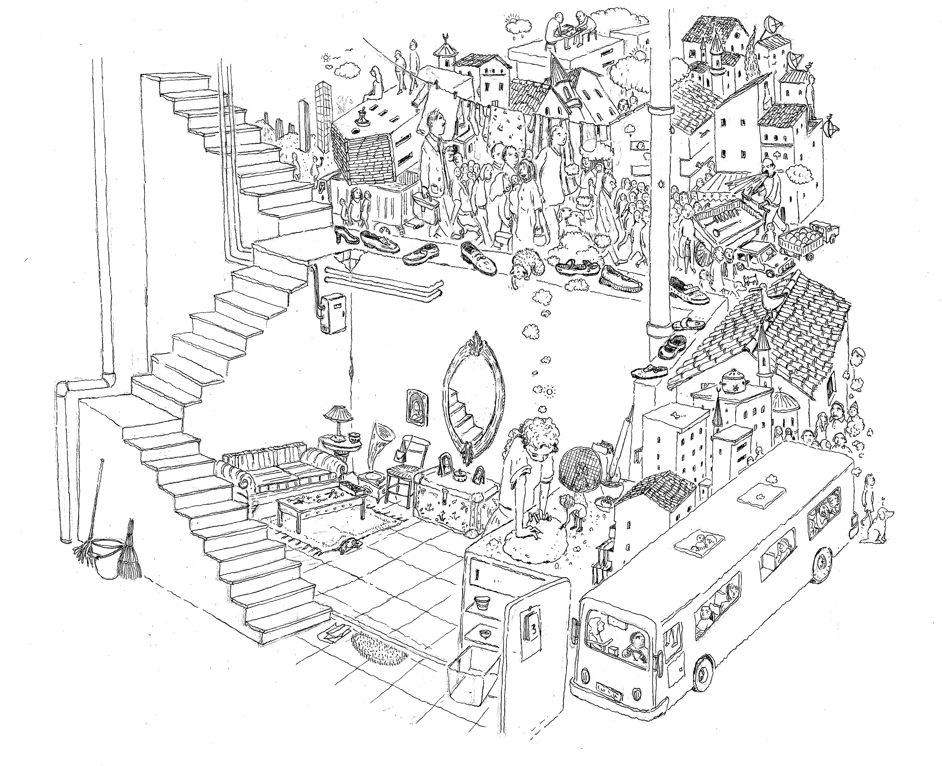 Illustration for the short story “Last Supper” written by Gaye Boralıoğlu, ink on paper, 2021