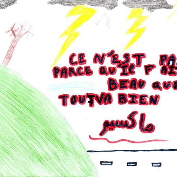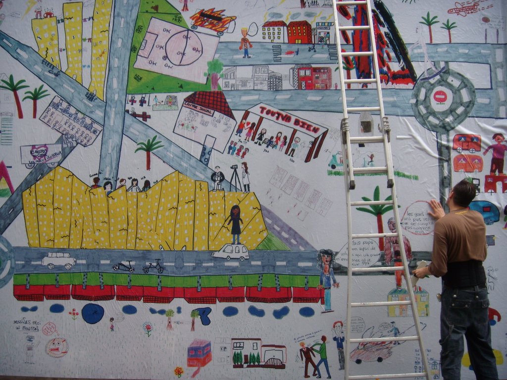 Tout Va Bien is a collective drawing and mapping workshop conducted by Ceren Oykut. It searches the ways to increase the possibilities of expression of the students of the Paul Verlaine College, but also of young adults of the Espace Jeunesse Clémenceau. Tout Va Bien is part of “2 + 1” which is a colaborative project designed by Apartment Project, realised In Maison Folie Moulins de Lille, with Co-realization lille3000 – Europe XXL in 2009.