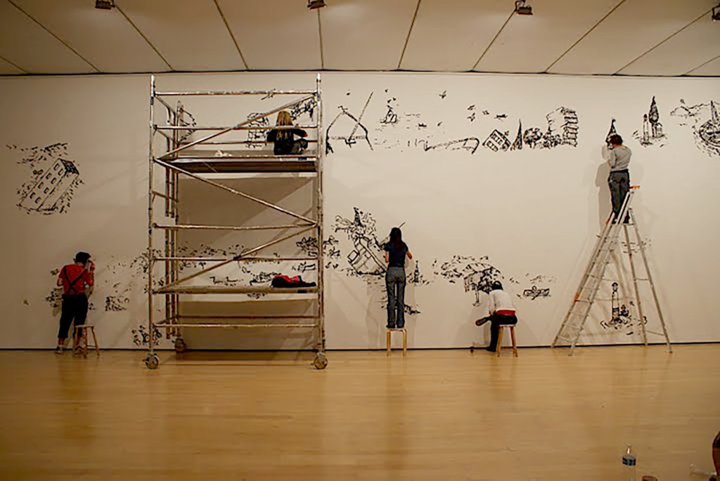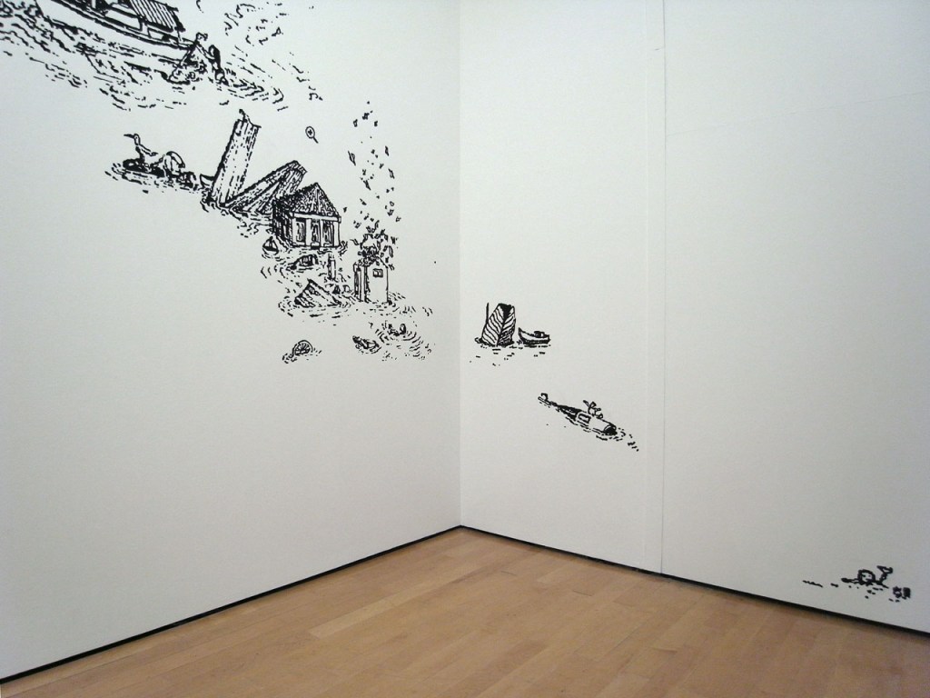 Please, Help Yourself, view from the exhibition, acrylic on wall, 17x5m, Musée D’art Contemporain, Lyon, 2009