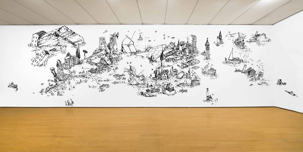 Ceren Oykut’s contribution has been directly applied to the museum walls like a giant storyboard. Please, Help Yourself is a tangle of drawings telling a tale with an apocalyptic ending. A mix of graphic novel, fresco and wall decoration, the work is marked by the way each character is handled with enormous care and a skill mingling popular and classic culture. A native of Istanbul, Oykut takes her images from the subtle chaos of everyday life in a city of heightened contrasts and life on the razor’s edge. She is above all interested in the “little people”, those on the verge of exclusion: newspaper vendors, glue-sniffers, the unemployed and vagrant animals: groups which, while not exclusively symbolising poverty, reveal the sheer richness of everyday life. Working in direct contact with her subjects in very different contexts, Oykut compares her own life and experiences with what she sees in other host cities – in this case Lyon – and so contributes to ongoing dialogue and the fostering of new forms of social mixity. / François Saint Pierre, Directeur du Centre de photographie de Lectoure
