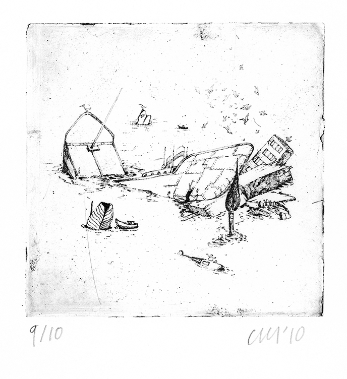 Tarlada Yüzenler/Swimmers in the Field (26.5×19 cm) and Tsunami (26×29.5 cm), photogravure, , 2010