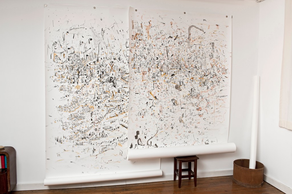 what is my name, Ceren Oykut, ink on paper (240×150 cm and 350x 150 cm), 2013