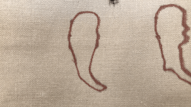 Animation loops, stitch, marker and acrylic on fabric