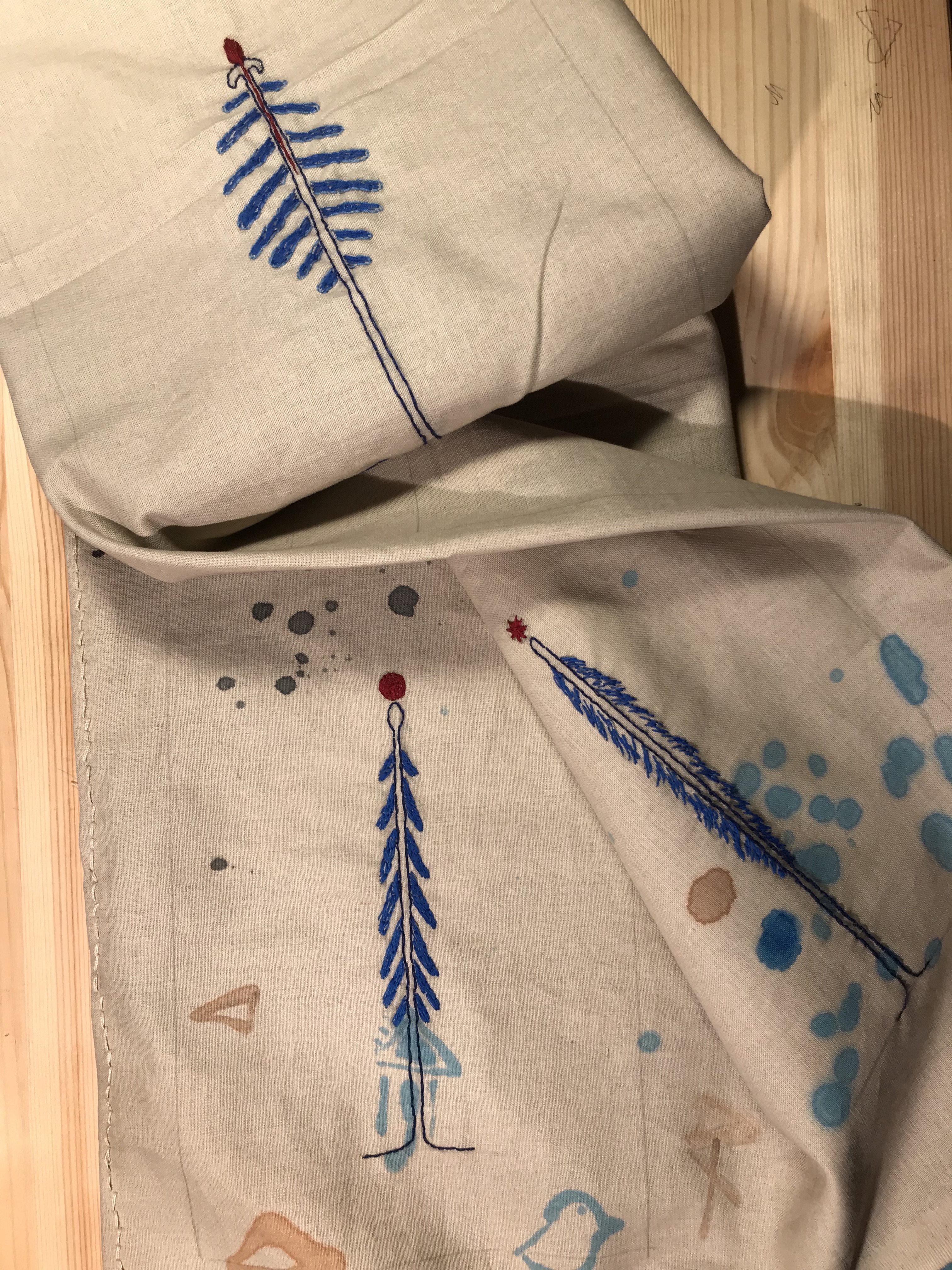Shy Installation is an ongoing project which started as an animation workspace experimenting on fabric patterns. Shy Installation transformed itself into a chest which brings together different forms of production and different narratives, displaying the collectivity within an individual production. The first chapter of Shy Installation was shown at Galerie im Saalbau (Das Ich im Wir, 2021), and Neurotitan/Berlin (Lauschen statt Rauschen, 2020). Second chapter titled Cypress was included in the project “AKİS” at Apartment Project Berlin/2021. The third chapter titled A Book Of Longing was a part of the installation “Room Untitled“, within the exhibition “Beyond Home/A Feminist Deconstruction” at Kunstraum Kreuzberg/Bethanien/Berlin/2023. The works on fabric harbour the storyboard of short animation loops processed with marker, acrylic paint, stitch and cutting on the fabric surfaces. The installation involves spotlights and video projections focusing on details on the surfaces.