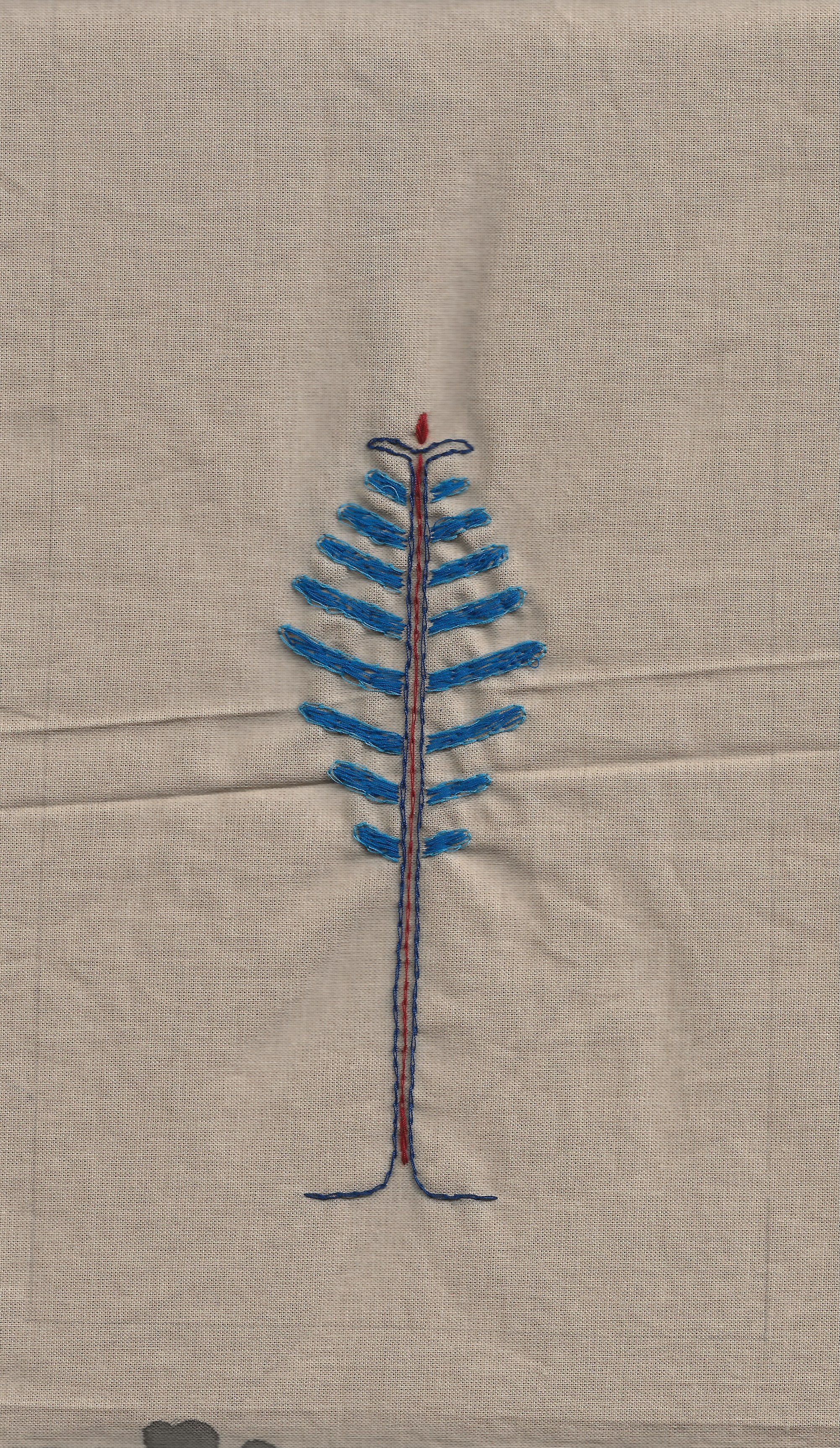 “Servi/Cypress” (stitch and acrylic on fabric, 82x135cm, 2021)